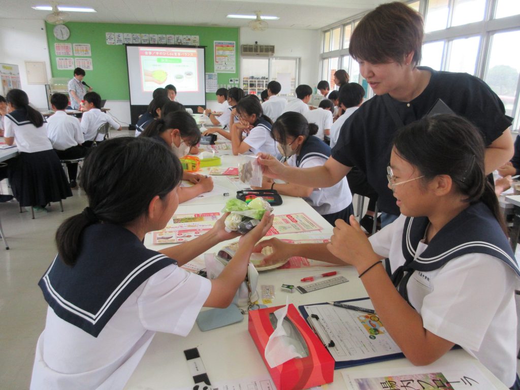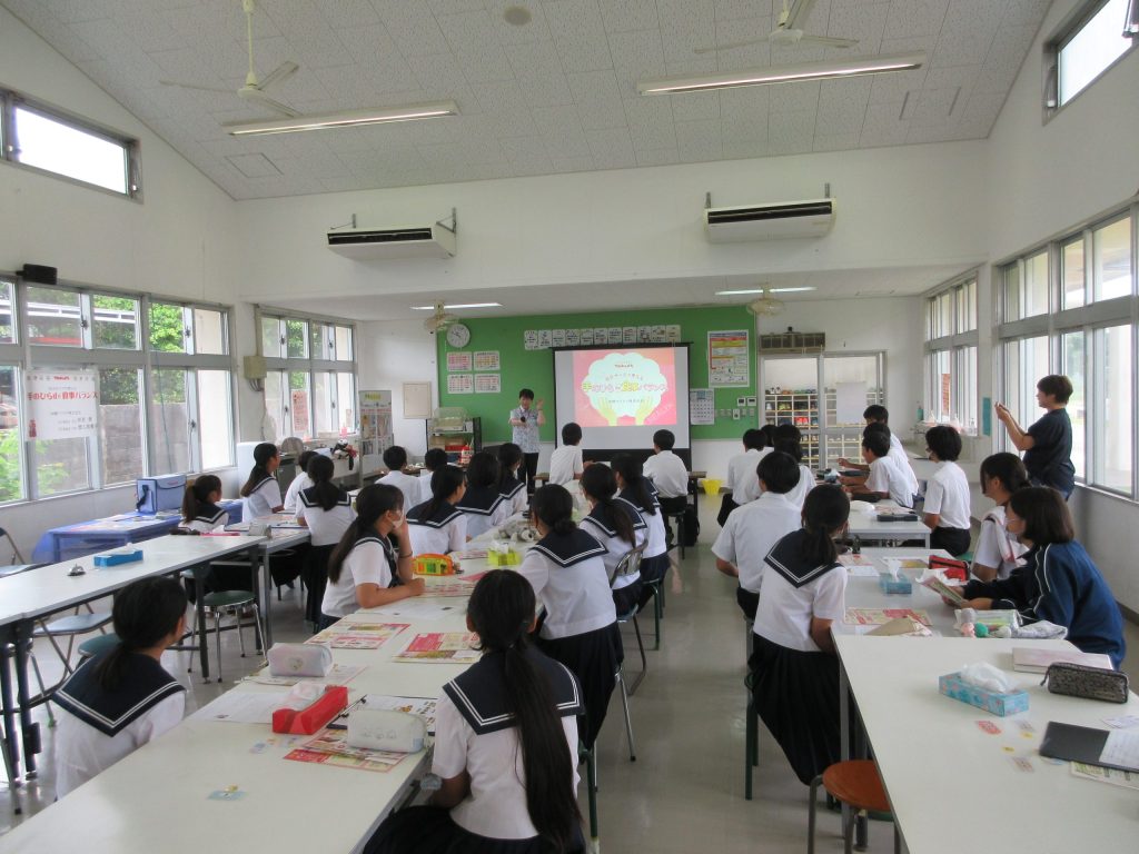 実は昨年度まで八重山農林高等学校に在籍していた家庭科の先生より、当時実施した「出前」が大好評だったことやその内容が子どもたちの“将来に役立つ”との強い想いから再依頼をいただきました。事前打ち合わせでは、通常の内容にプラスして、子どもたち持参のお弁当へもアドバイスしてほしい!と要望もありましたよ。