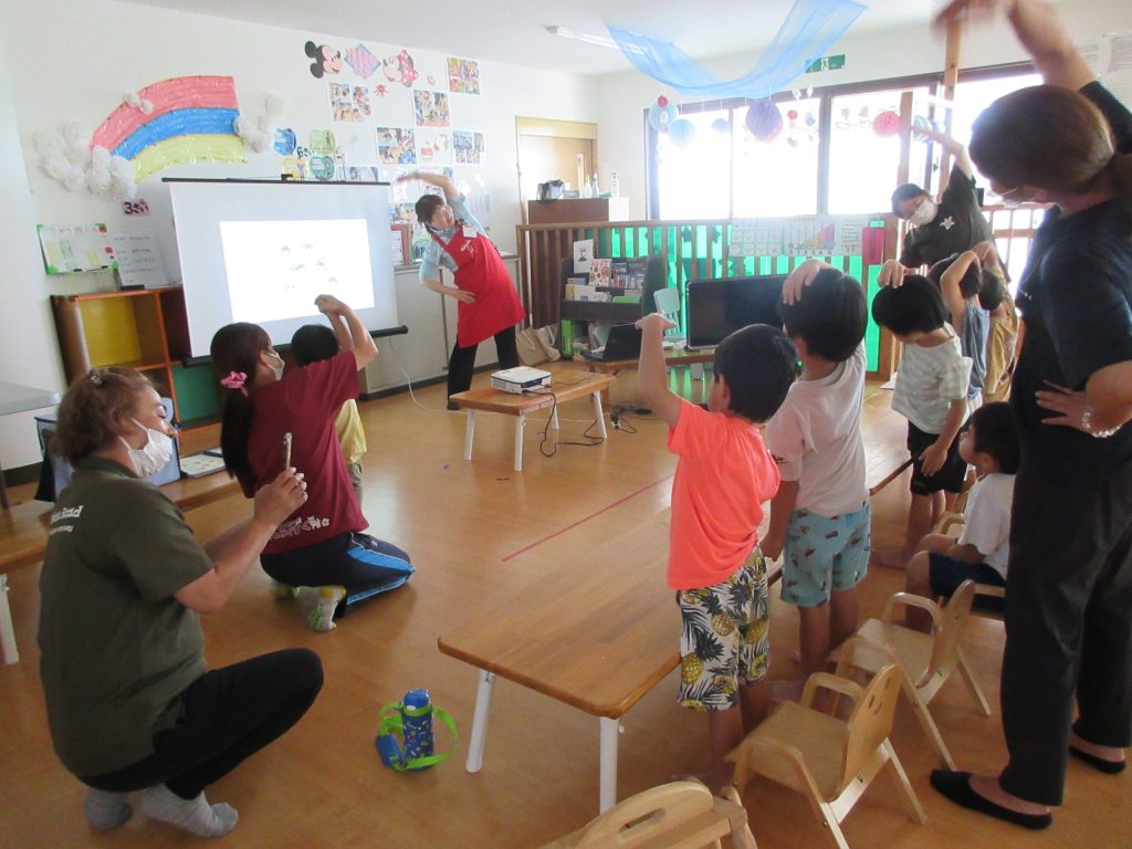 楽しく「おなかくん」のお話が終わったら、おなかげんきたいそうで元気いっぱいカラダを動かしましょう~♪