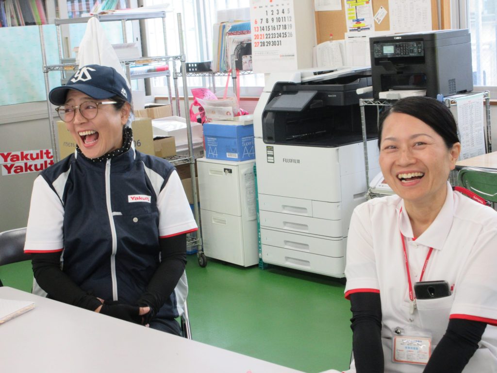 「ヤクルトが来た~」とオリジナルキャラクターの“ヤクルトマン”デザイン車から降りたところで「待ってました~!」の声。お出迎え嬉しいですね(^^♪