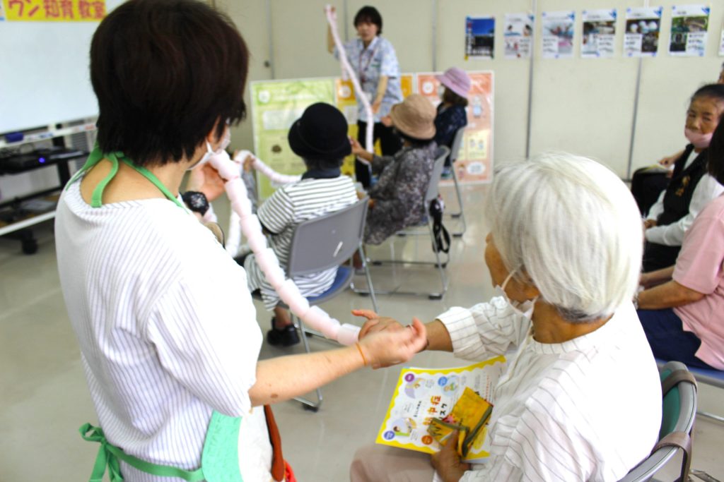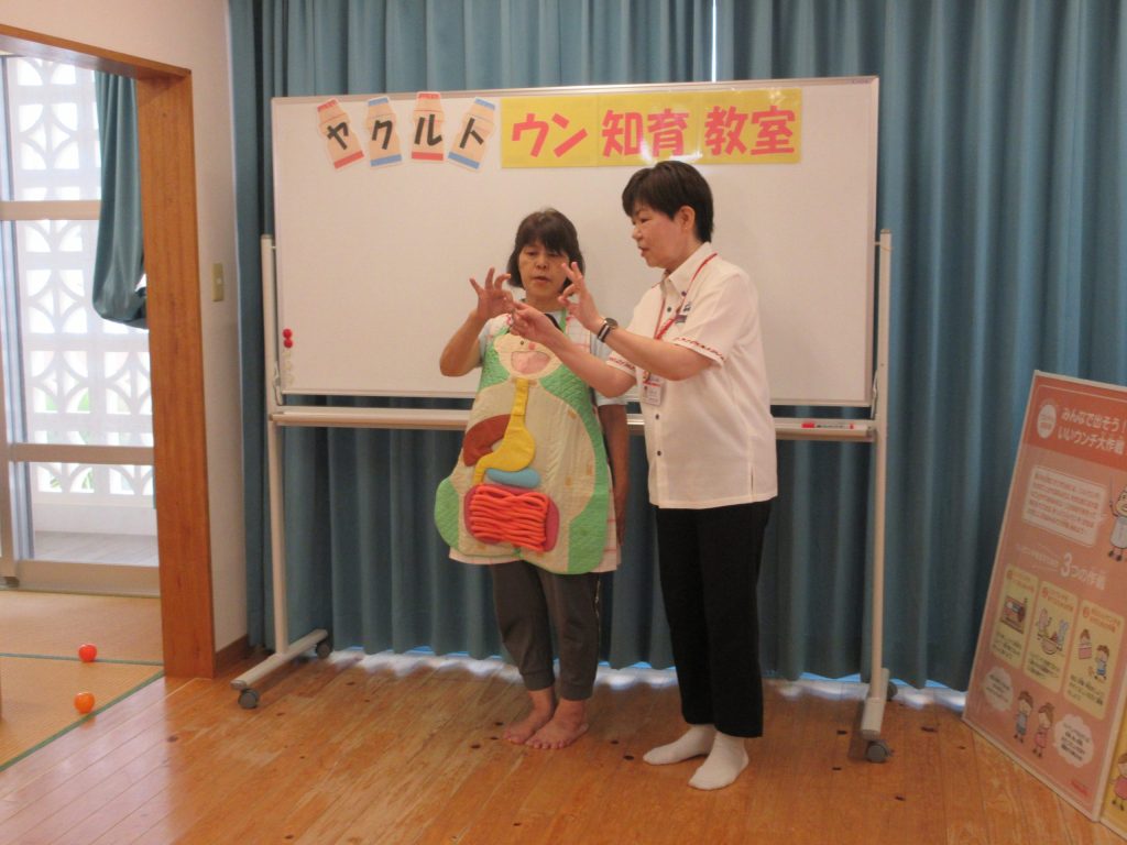 若手職員さんの登場にみなさまニコニコ笑顔です。さぁ消化器官のお勉強ですよ。