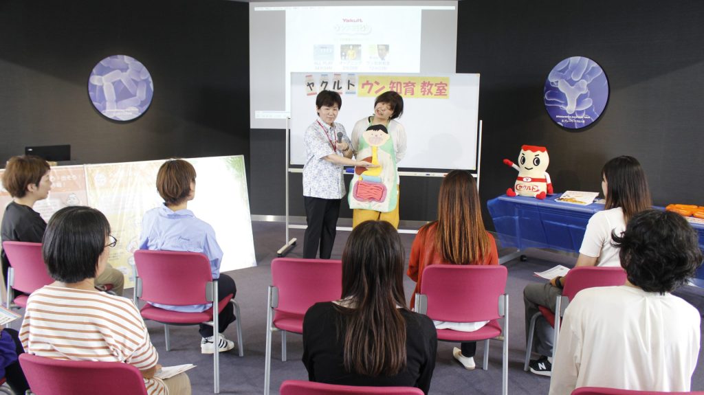 「ウン知育教室」はヤクルトならではのお勉強。お客さまに伝えたい気持ちから、真剣な表情になることも。