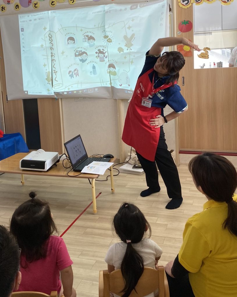 しっかりお話を聞いた後は、子どもたちが大好きな腸トレ体操に挑戦!
